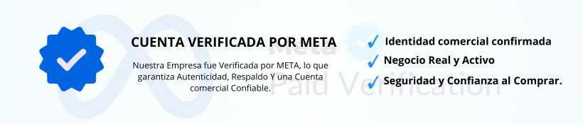 Nuestra cuenta comercial esta VERIFICADA POR META, lo que garantiza identidad real y cumplimiento de normas y trayectoria comprobable por nuestras redes sociales.